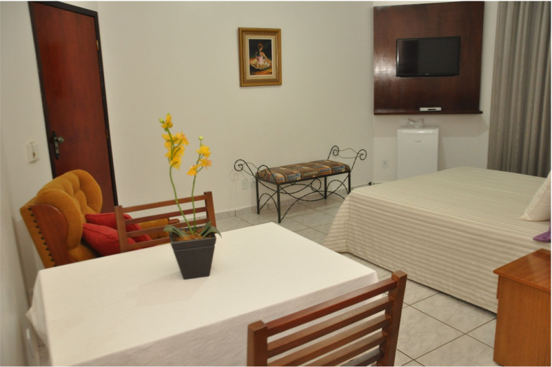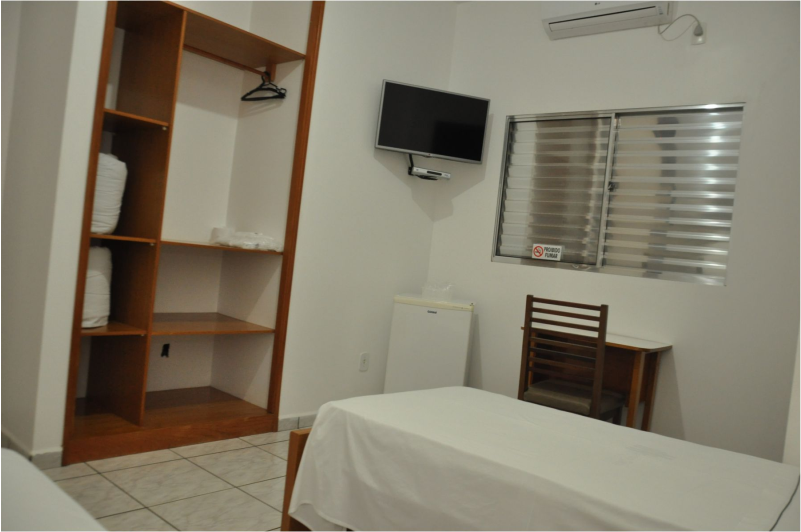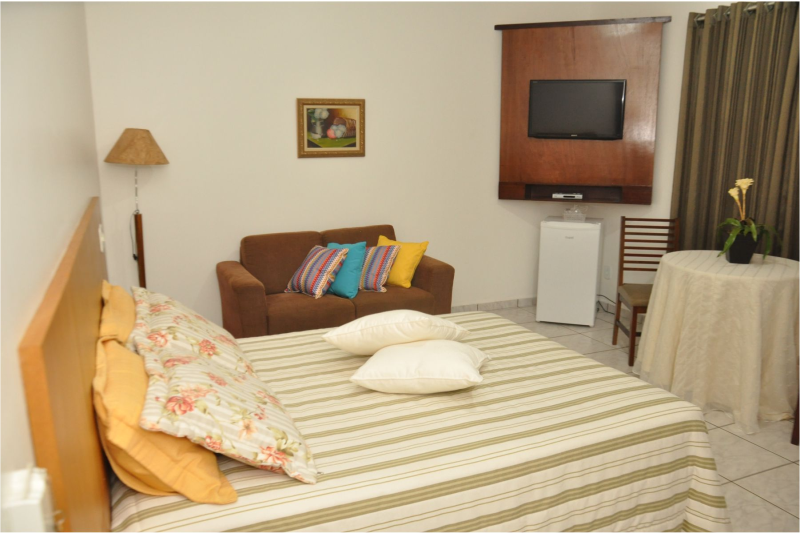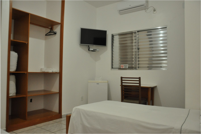 Todos os Nossos Apartamentos São Equipados com, ar-condicionado, TV Via Satélite, telefone, Internet Sem Fio gratuito e mesa para trabalho.